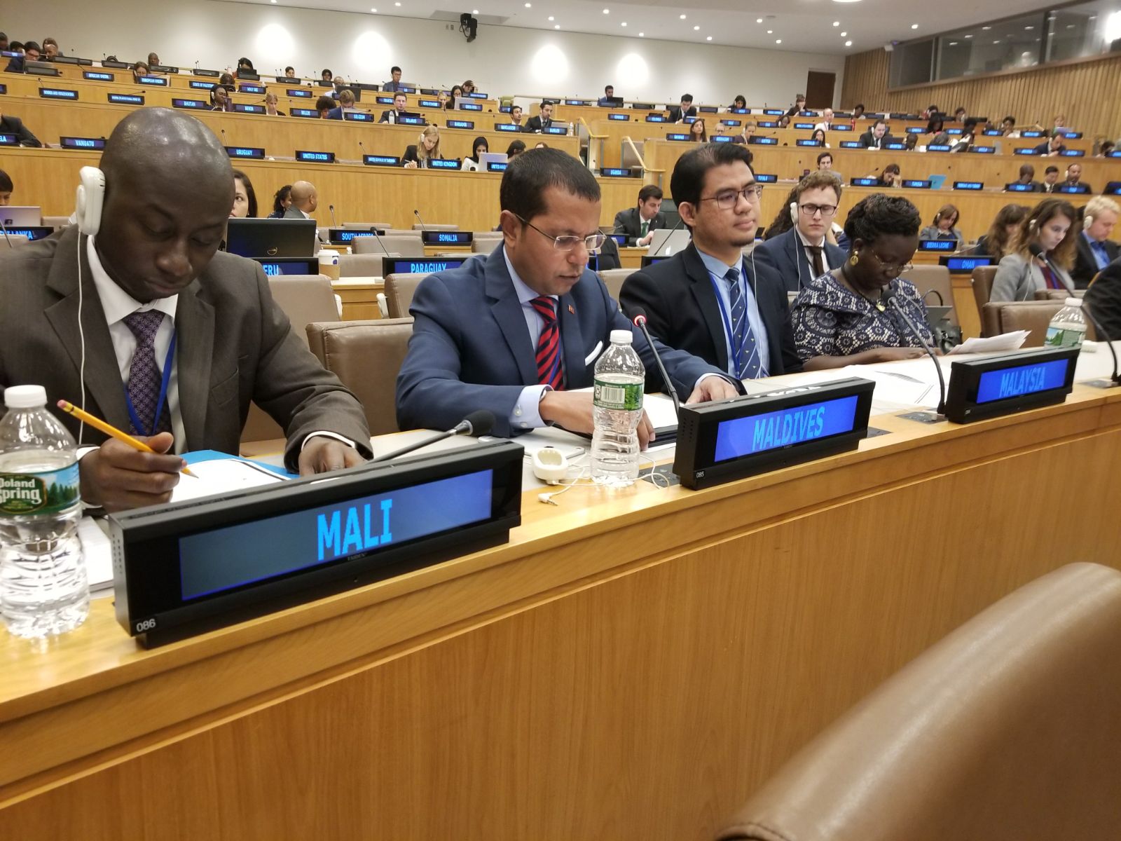 The Permanent Representative of Maldives to the United Nations, Dr. Ali Naseer Mohamed briefed on the efforts of the Government of Maldives to improve the lives of women, children, youth, poor, the elderly and persons with disabilities, during the Third Committee debate on the issue at the United Nations General Assembly this morning.