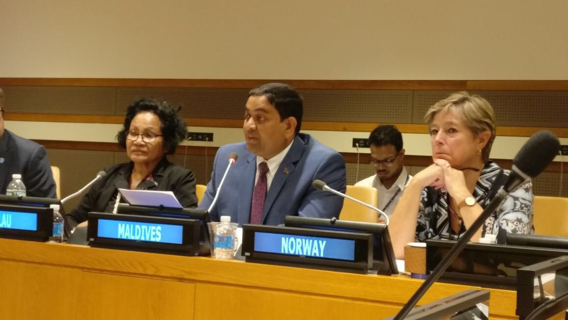 23 September 2017, New York, The Maldives co-hosted a high-level side-event entitled “Securing a Future for the Oceans: Leveraging Sustainable Fisheries and the Conservation of Marine Resources” with Palau, Norway and FAO at the sidelines of the 72nd Session of the United Nations General Assembly this afternoon.